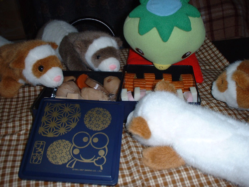 お正月にフェレットくん達がおせちをつっつきに来て大変だったっぴ〜。